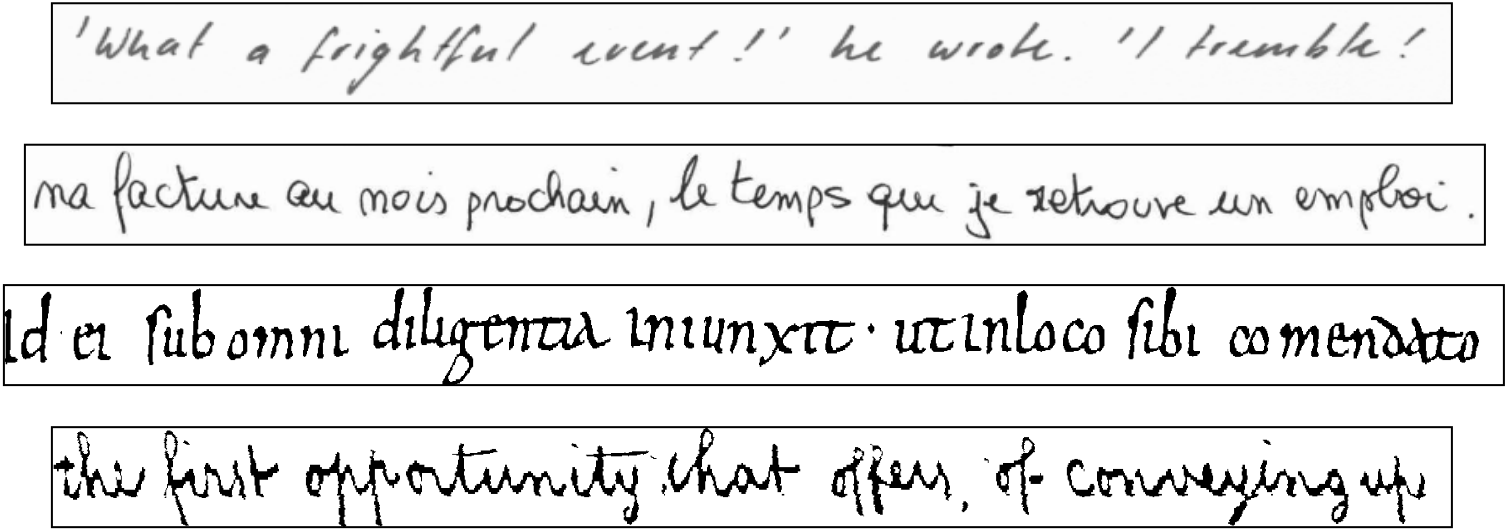 [1] A. F. S. Neto, B. L. D. Bezerra, A. H. Toselli, E. B. Lima, HTR-Flor: A Deep Learning System for Offline Handwritten Text Recognition, 33rd SIBGRAPI Conference, Porto de Galinhas, Brazil, 2020, pp. 54-61, doi:10.1109/SIBGRAPI51738.2020.00016.